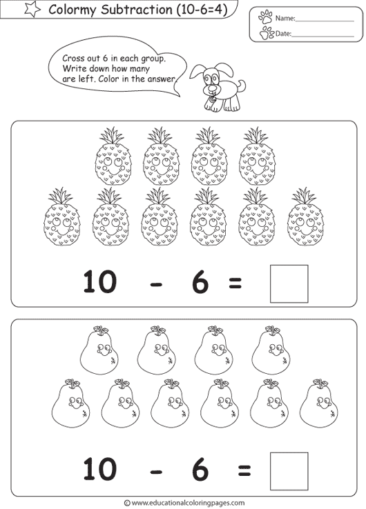 Coloring pages,free coloring pages,number coloring pages free printable,coloring pages for girls, . Here you will find our range of free printable kindergarten math worksheets, which will help your child learn to add and subtract up to 10. These subtraction coloring worksheets require students to solve simple math facts to find the right color to shade in to reveal a picture of their own . Just click on the coloring sheet title to view details about . Click on the image to view or download the pdf version.